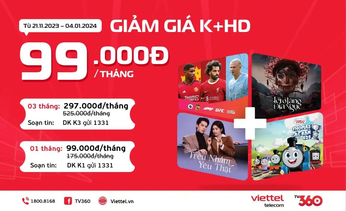 * Ưu điểm– Xem hơn 155 kênh Truyền hình trong đó có bao gồm các kênh trong nước trừ các kênh SCTV, K+ (đã bao gồm kênh VTVcab, HTV, VTC) và quốc tế In the Box– Đầy đủ các tính năng của kênh : tạm dừng, xem lại trong 7 ngày, tua lại trong 2h.– Kho phim HD bom tấn với hơn 100.000 giờ xem phim.– Miễn phí gói VOD Giải trí tổng hợp: Kho nội dung khổng lồ gồm show giải trí, âm nhạc, thể thao, thiếu nhi, clip hot, …liên tục cập nhật mới nhất.– 1 tài khoản xem đồng thời trên 2 thiết bị. (tối đa 1 tivi)– Được trang bị đầu thu có hỗ trợ điều khiển giọng nói trong quá trình sử dụng.* Giá cước:1. Đối với tivi đầu tiên:– Cước thuê bao 54.000đ/ tháng – Đã bao gồm VAT– Miễn phí hòa mạng– Khuyến mại đóng cước trước:+ Tặng 1 tháng khi đóng cước trước 6 tháng+ Tặng 2 tháng khi đóng cước trước 12 tháng(Ưu đãi ĐẶC BIỆT: tặng 2 tháng khi đóng cước trước 6 tháng & tặng 4 tháng khi đóng cước trước 12 tháng áp dụng tại một số địa chỉ khi triển khai lắp đặt thực tế)2. Đối với tivi thứ 2 trở lên– Cước thuê bao 35.000đ/ tháng – Đã bao gồm VAT– Phí hòa mạng 690.000đ/ thiết bị– Khuyến mại đóng cước trước:+ Tặng 1 tháng khi đóng cước trước 6 tháng+ Tặng 2 tháng khi đóng cước trước 12 tháng(Ưu đãi ĐẶC BIỆT: tặng 2 tháng khi đóng cước trước 6 tháng & tặng 4 tháng khi đóng cước trước 12 tháng áp dụng tại một số địa chỉ khi triển khai lắp đặt thực tế)* Lưu ý: KH đang sử dụng Truyền hình số 2 chiều, Truyền hình cáp Analog, Truyền hình số 1 chiều có nhu cầu lắp thêm Truyền hình TV360 phải lắp gói cước tivi1 của Dịch vụ TV360 xong mới đăng ký được gói cước TV2